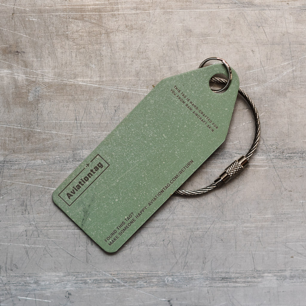 Note: Every tag is unique. Depending on the plane, tags may vary in terms of haptics, material thickness and colour. Small blemishes bear witness to the plane’s long history and are an authentic reminder of its glory days over the clouds. Small scratches, flaky paint and imperfections are totally normal and give our Aviationtags their unique charm – the charm of a vintage product crafted from upcycled materials. These quirks are not the result of the production process, they simply reflect the state of the aircraft material we use when it was extracted. The original aircraft paint of this edition is rather sensitive, so please take good care of your tag!