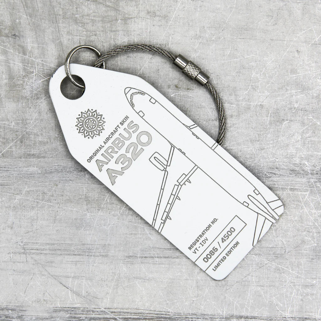 Welcome to the world of aviation history! This exclusive Aviationtag edition marks a significant milestone as our first plane tag from an Indian airline. The Aviationtag has been crafted with care from the fuselage of the former IndiGo Airlines Airbus A320 with the MSN 1767.
