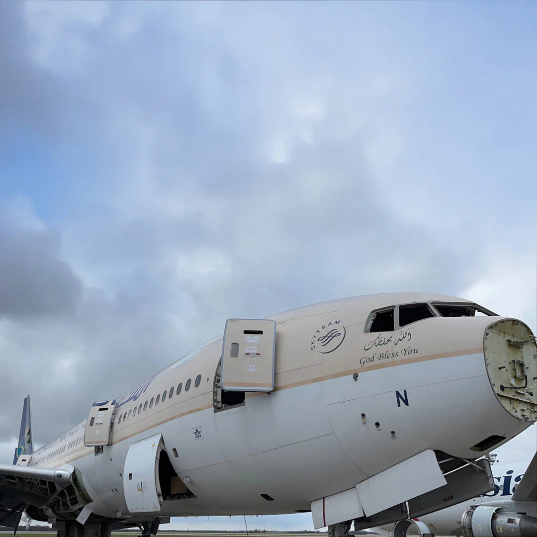 The Boeing 777-200ER, registration HZ-AKN (MSN 28357), was delivered to Saudi Arabian Airlines in December 1998. Configured with 14 business-class and 327 economy-class seats, it served as a reliable workhorse for long-haul routes. After its retirement in Riyadh in September 2018, the aircraft was moved to the United States in 2019, where it was parked and awaited its next chapter.