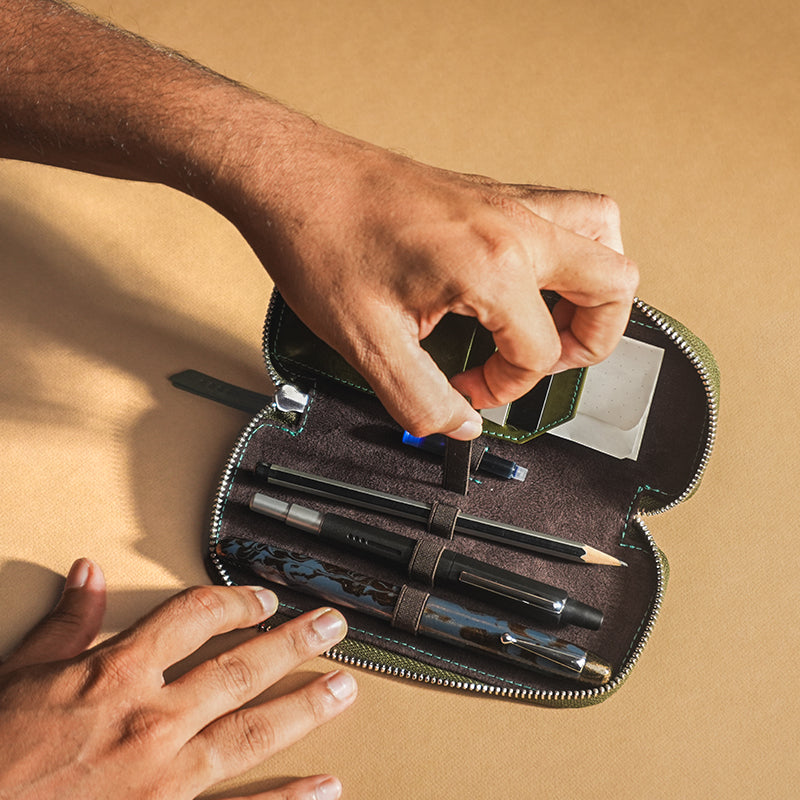 Endless Companion Leather Adjustable 3 Pen Pouch - Green