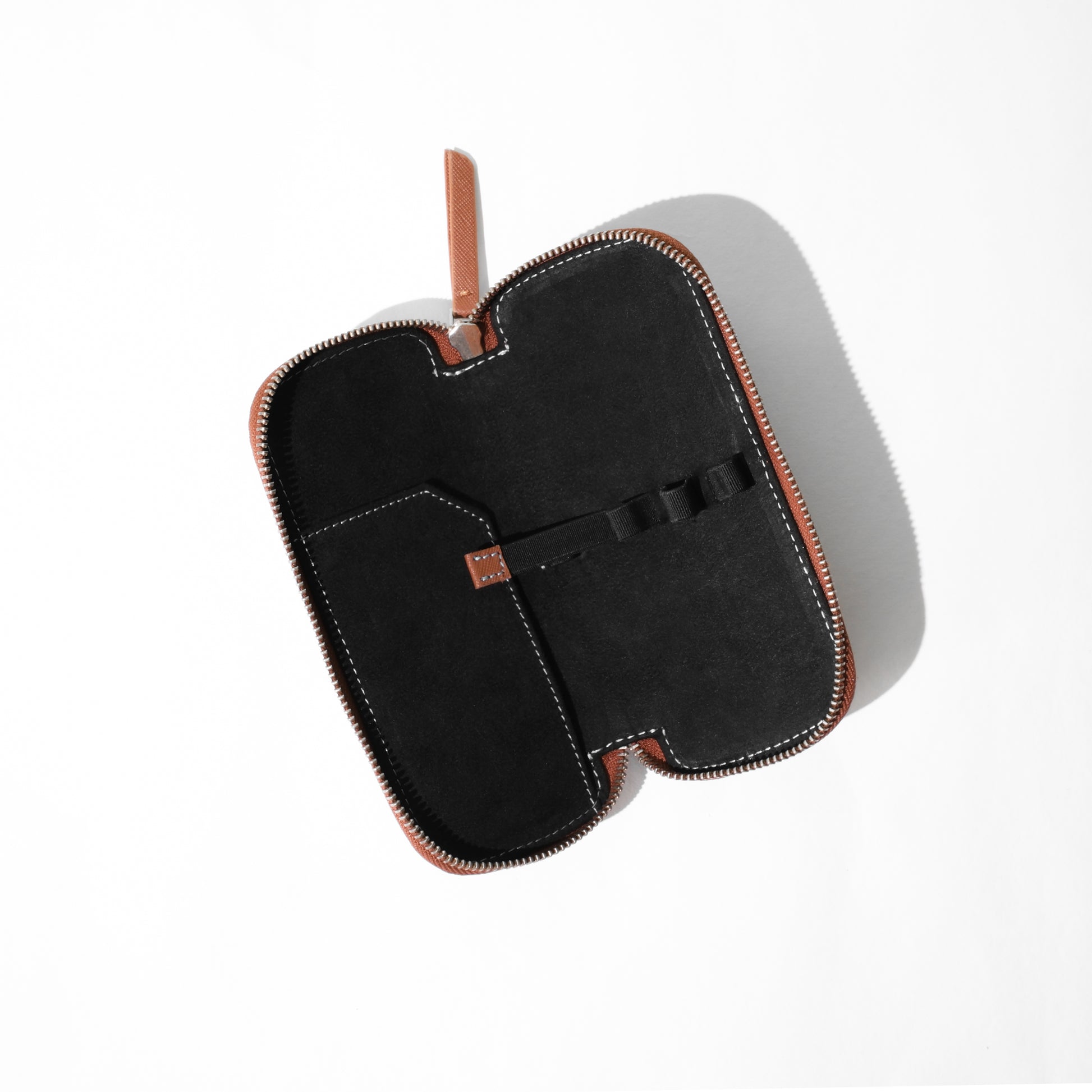 Endless Companion Saffiano Leather Adjustable 3 Pen Pouch - Brown