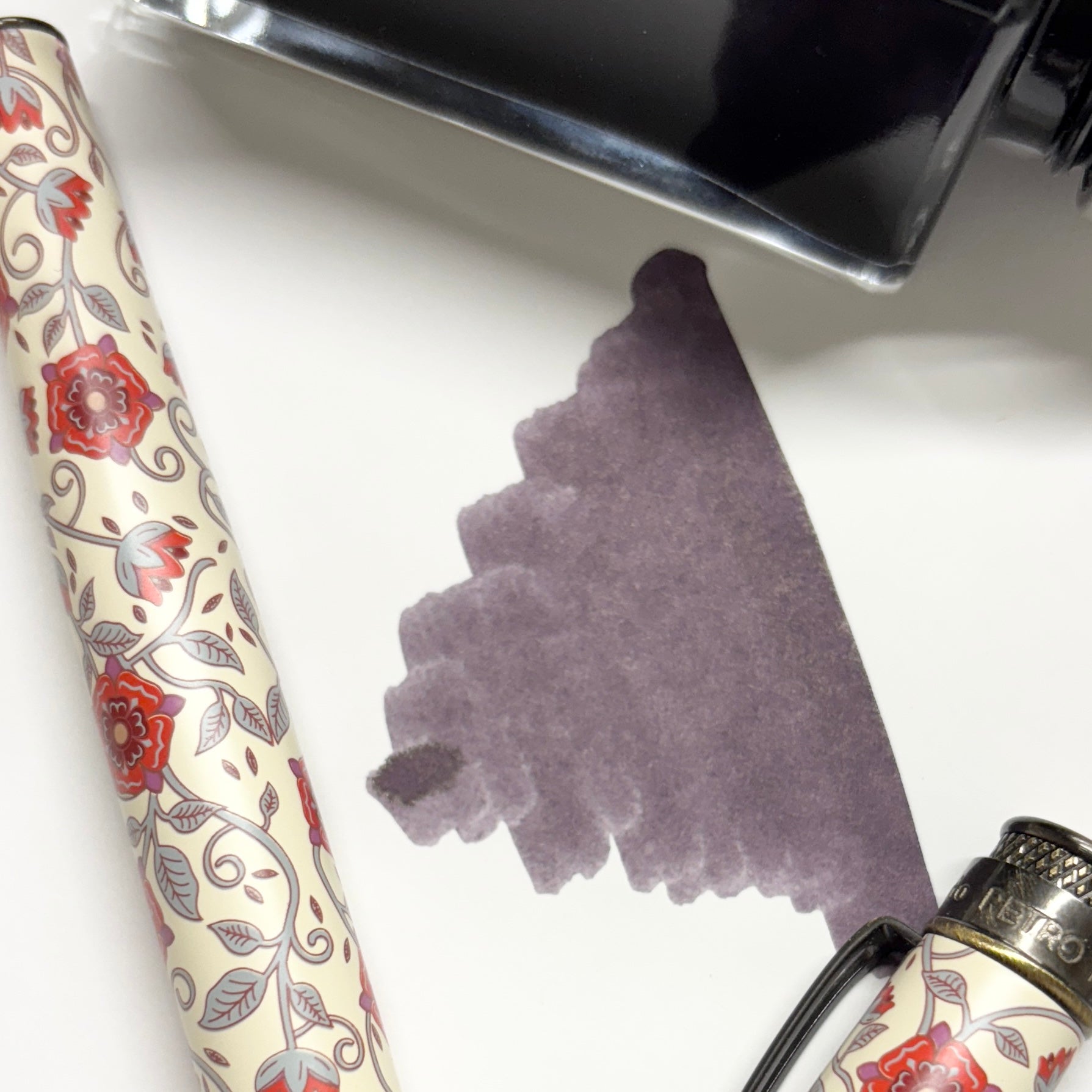 Unveil the Elegant Nuances of the Tudor Era: Introducing Whisper of Thornes ink, an exclusive creation from Mann Inc designed to perfectly harmonize with the Retro 51 War of the Roses Lancaster Fountain Pen. This light grey ink, infused with a delicate whisper of lavender, captures the refined beauty of England's Tudor period. Evoking both calm and grace, it subtly hints at the regal significance of purple, a color once the exclusive domain of royalty, signifying status and bloodline. Experience excellent shading that brings out the subtle variations in tone, complemented by rich pooling that adds a luxurious depth to every stroke. Elevate your writing with this sophisticated ink, a testament to timeless style.