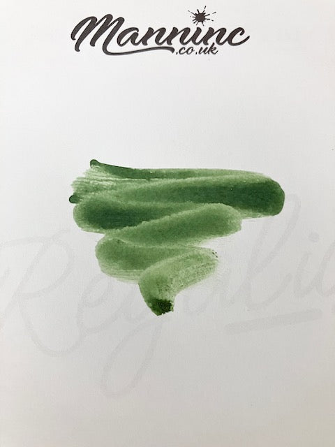 It's a rich sage green which is bold and confident. On good quality paper (we recommend Endless Regalia) a wet ink that is desaturated with hints of light brown and yellow. No shading or sheen, the ink will start off looking very dark and then drys lighter.