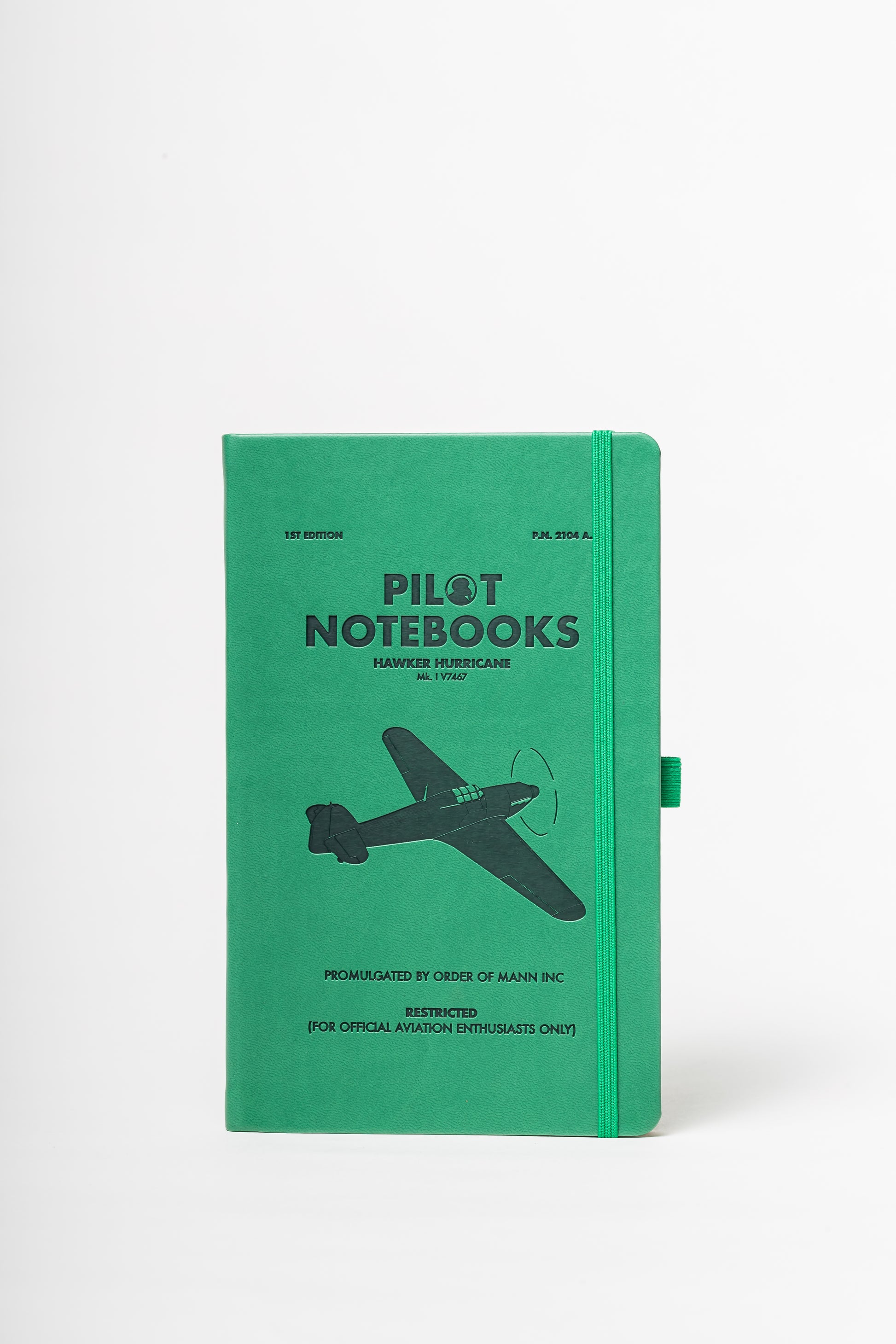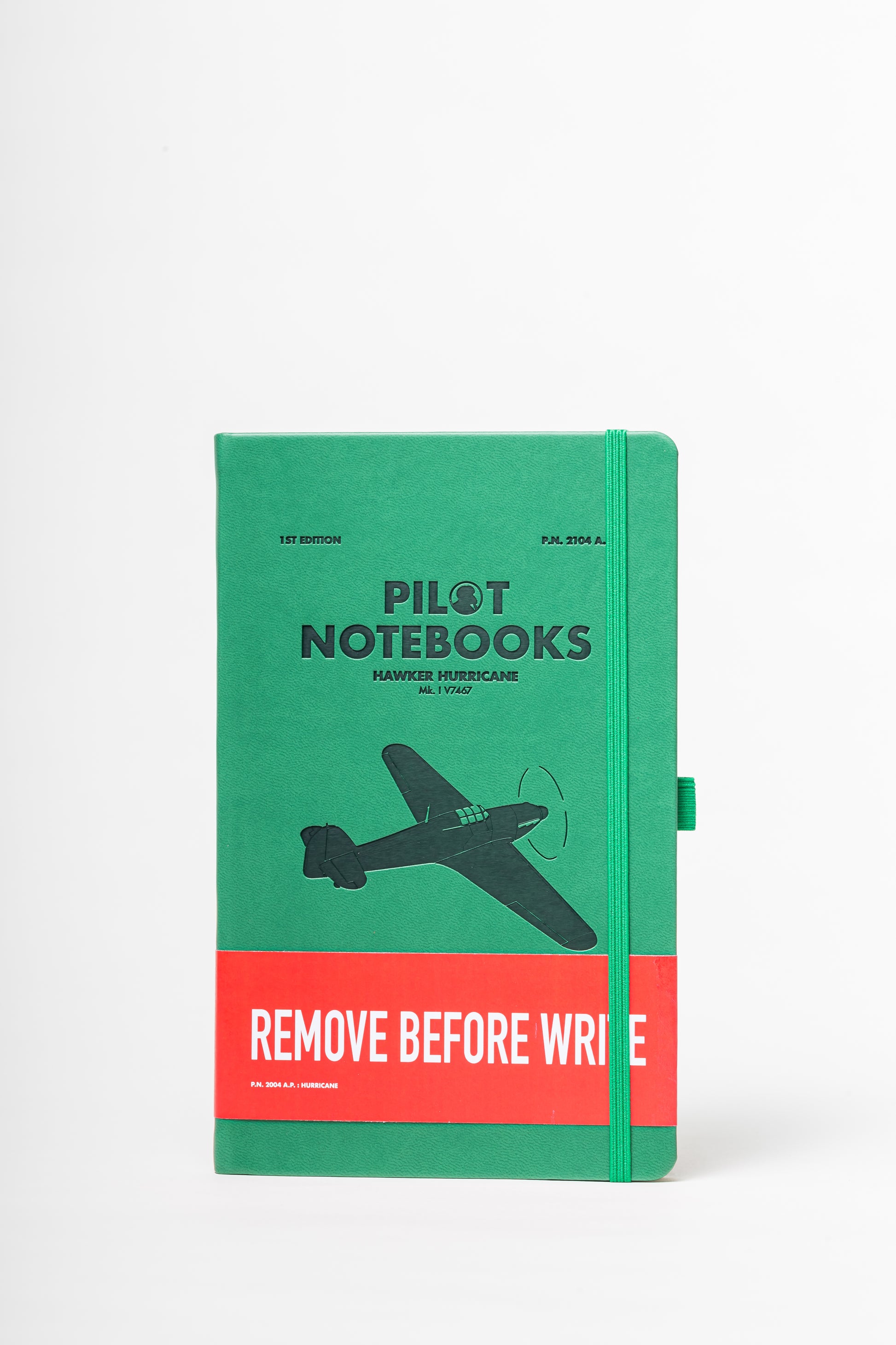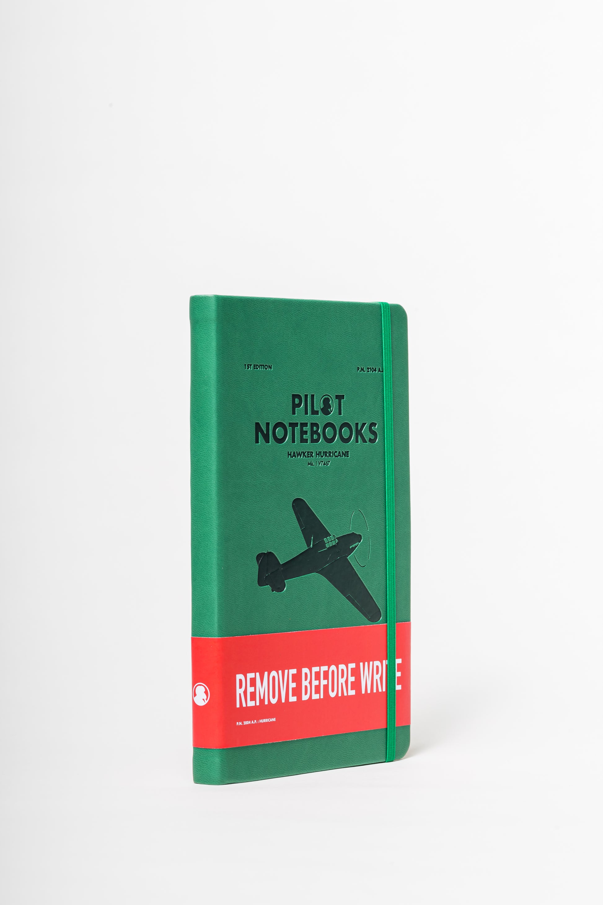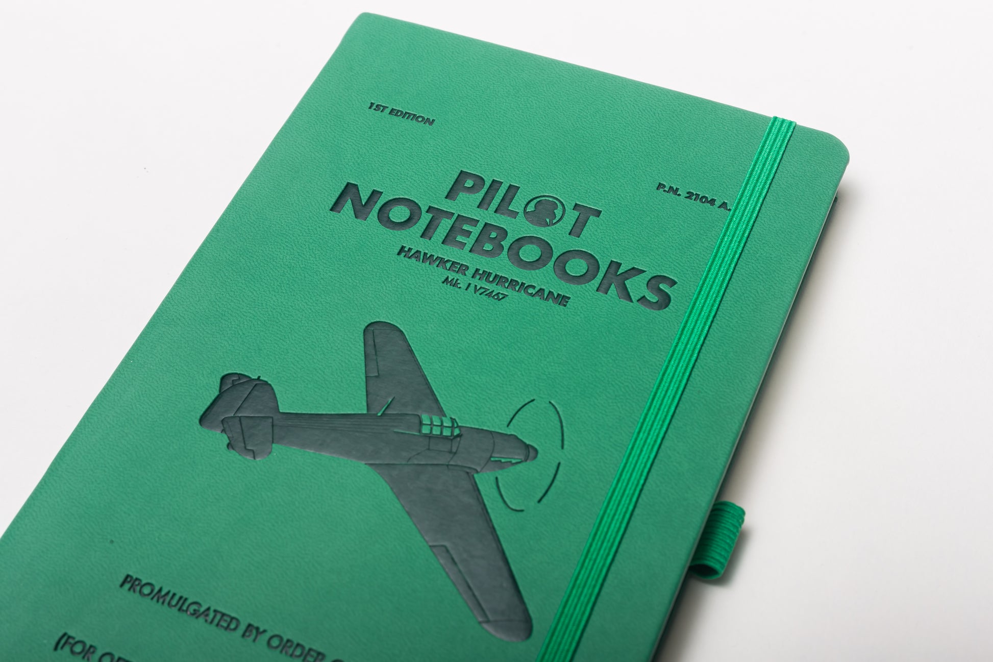 Hurricane design blind embossed into a soft touch Italian notebook, expertly crafted like a WWII aircrew jacket, the Replica Pilot Notebook design collection features soft and flexible materials, accurate details and an exclusive blocked design. The notebook colour is Forest Green, with an authentic WWII style.