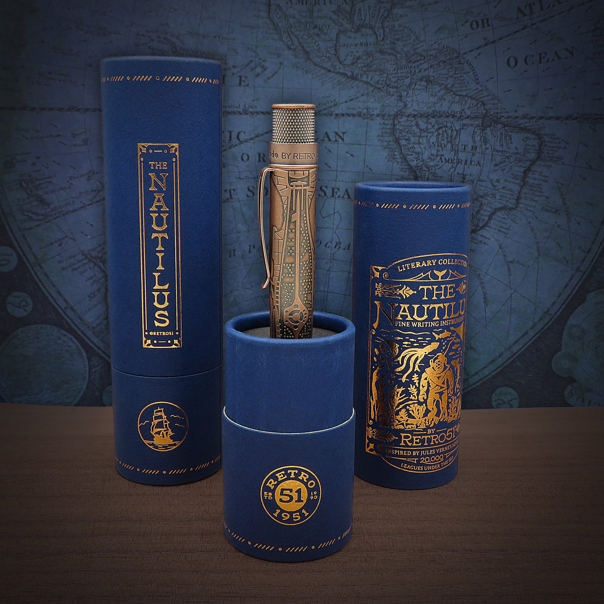 Journey to undiscovered depths with Retro51’s newest addition to the Literary Collection, The Nautilus. The mystery of the sea awaits with this new Big Shot TornadoTM Rollerball intricately designed after the legendary Nautilus submarine from Jules Verne’s timeless masterpiece 20,000 Leagues Under the Sea. In the words of Captain Nemo, “The ocean is an immense desert where man is never alone, for he can feel life bustling all about him.”