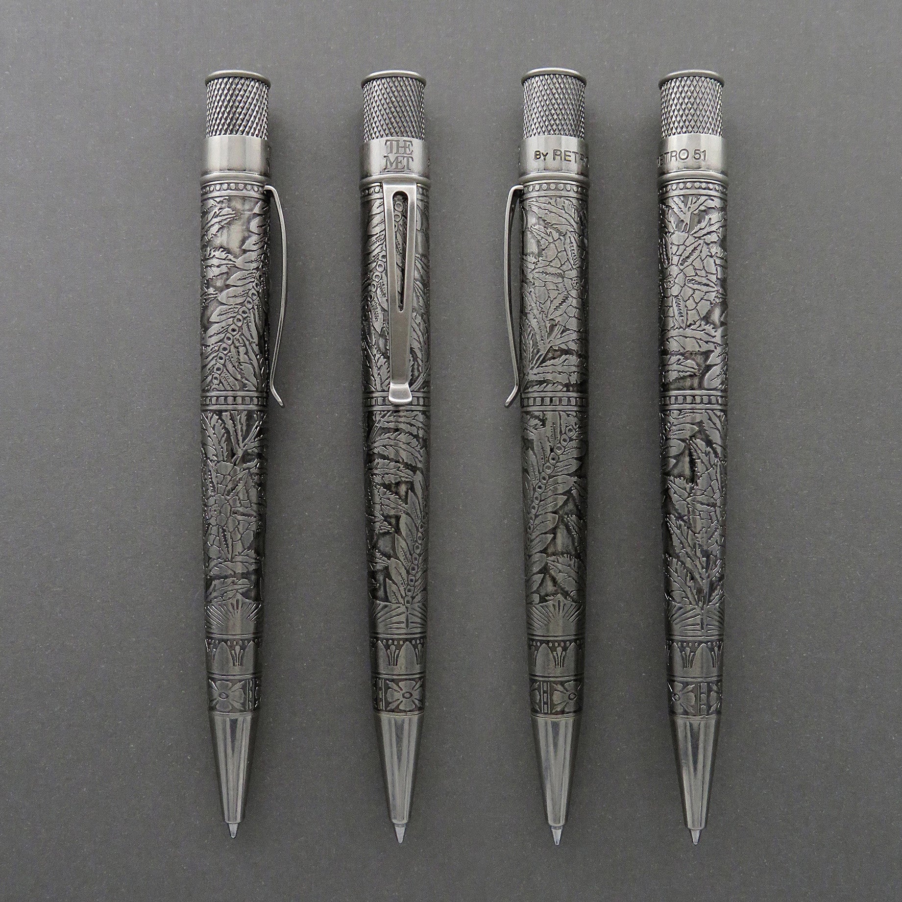 Retro51 is proud to announce the newest officially licensed Metropolitan Museum of Art pen collection design, the Rhinelander Pitcher Rollerball Pen. This artful pen is inspired by the intricate detailing on a fine silver pitcher created in 1874 or 1875 by Tiffany & Co. under the direction of Edward C. Moore, who oversaw the production of a diverse array of exquisitely wrought and highly original silver creations. This pitcher, which exemplifies the company’s engagement with Near Eastern and Indian art, was presented by Julia Rhinelander to her niece Mary in 1883 on the occasion of Mary’s wedding.