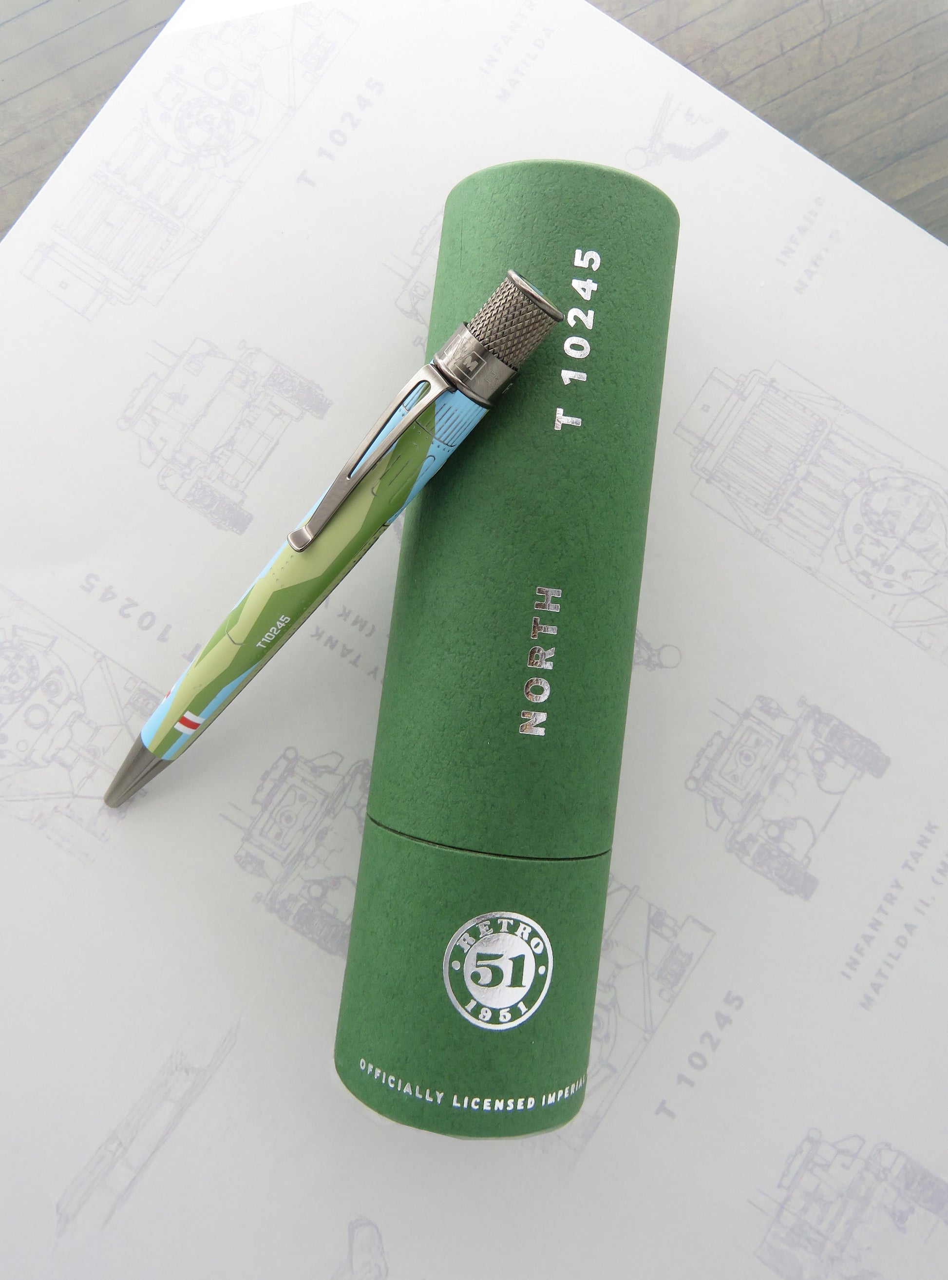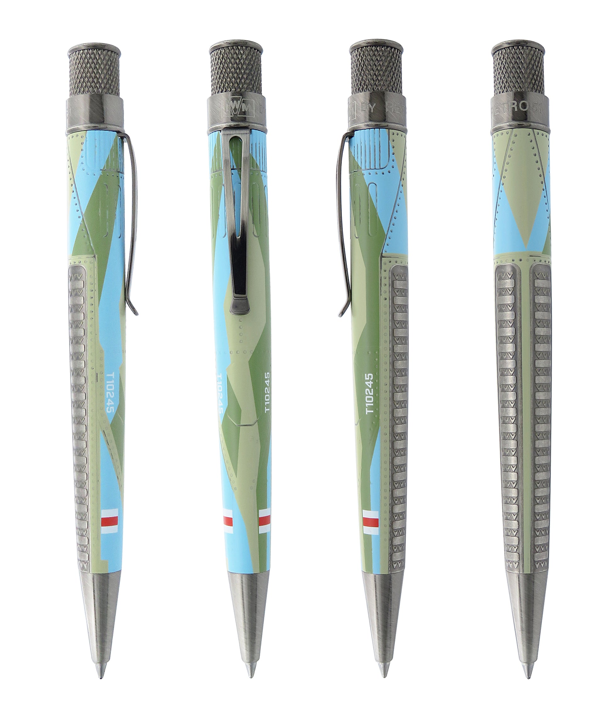 Finished in a striking camouflage pattern of khaki, light blue, and olive green, each pen captures the distinctive look of the tank that earned its place on battlefields from France to North Africa. They are complete with antique silver accents, numbered top ring and packaged in a commemorative tube.