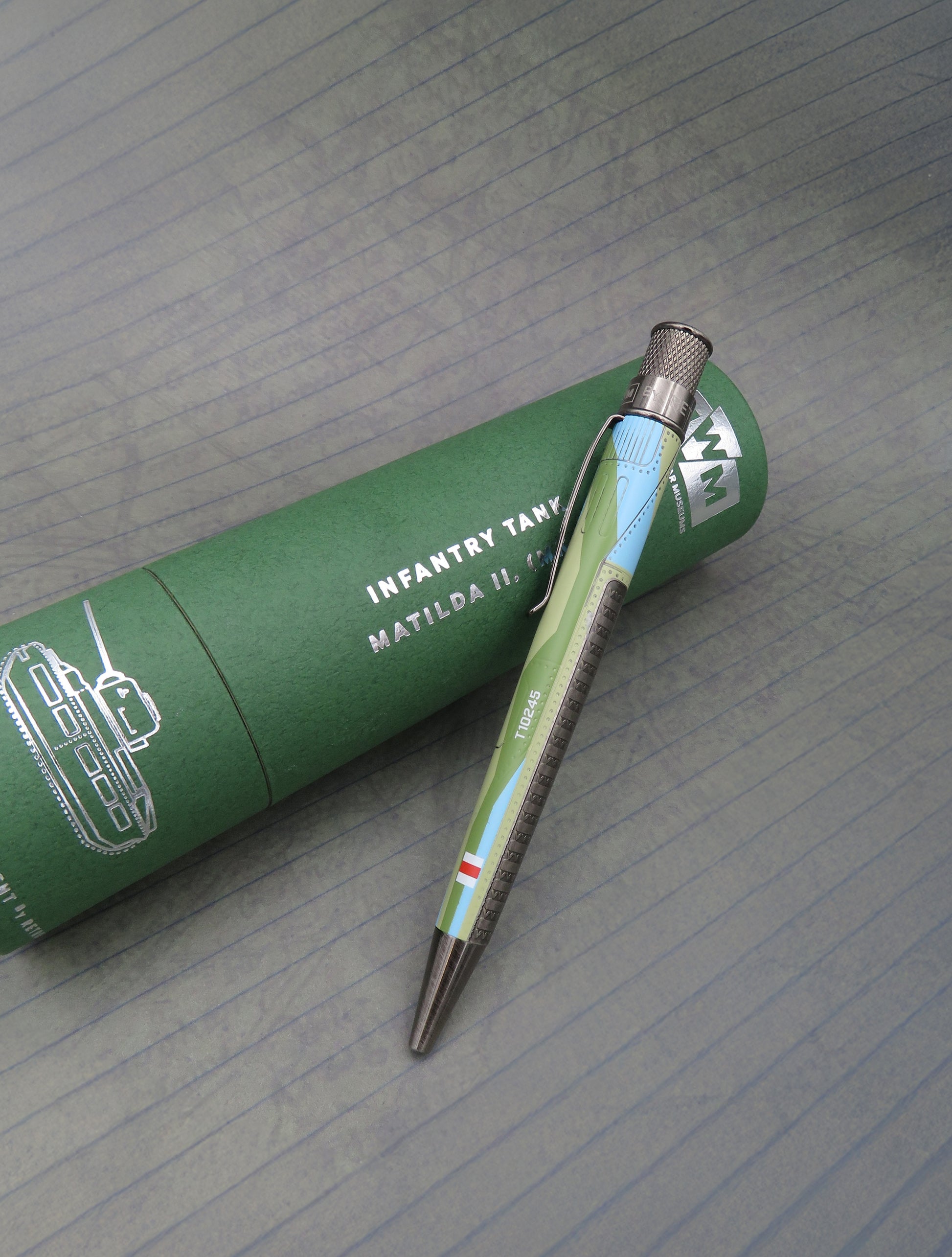 Introducing the newest addition to the officially licensed Imperial War Museums (IWM) Collection: the Matilda Infantry Tank. Crafted to honor one of World War II’s most legendary armored vehicles, this writing instrument is more than a pen—it’s a piece of history in your hand. Featuring a combination of acid-etching and printing, this Tornado™ rollerball comes to life—from the armor panel lines to the tactile texture of its riveted steel plating. Run your fingers along the barrel and feel the craftsmanship echoing the grit and ingenuity of wartime engineering.