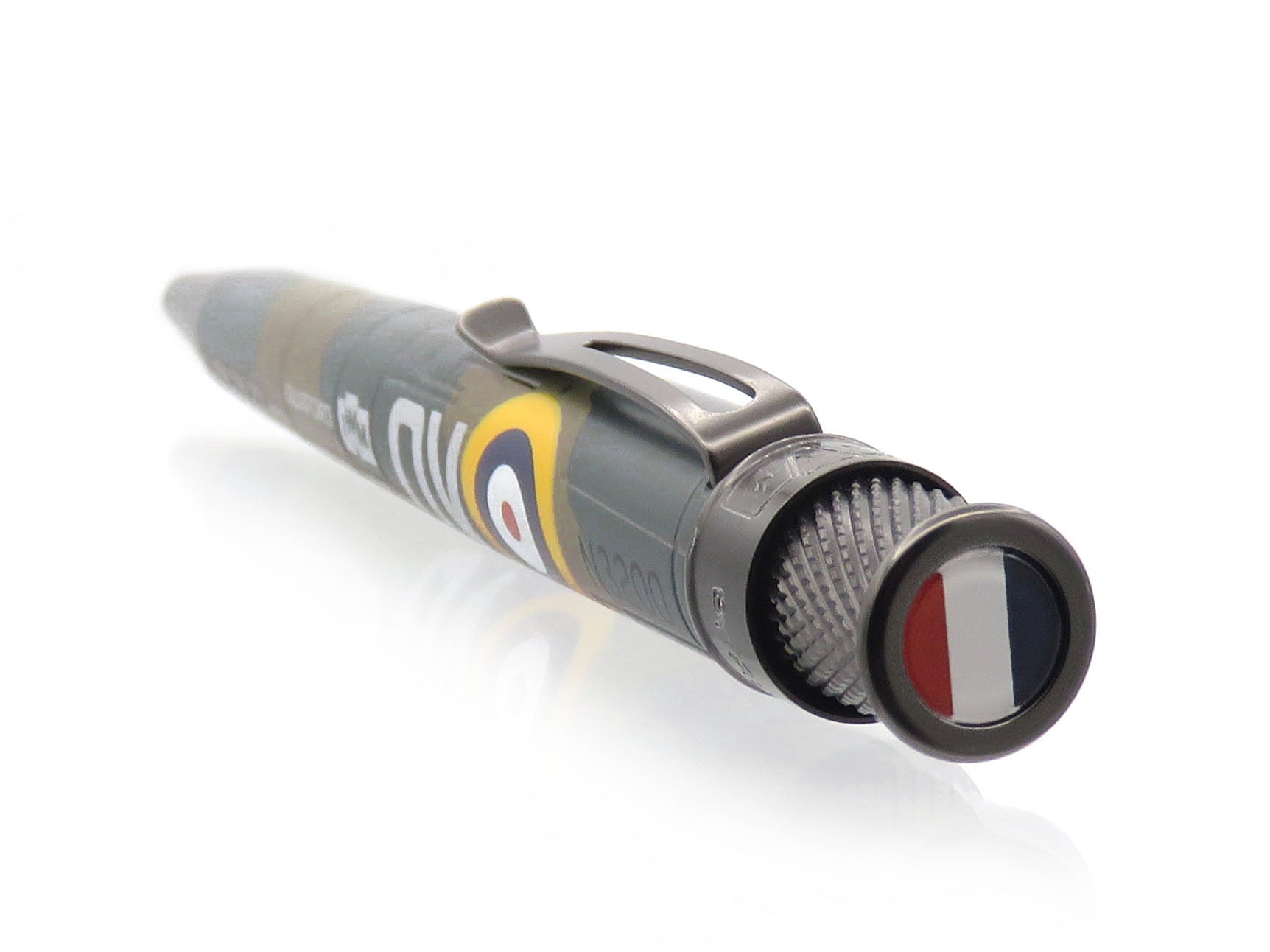 The Spitfire N3200 rollerball pen has been acid-etched with rivets and panels and then painted in the matching camouflage pattern. The plane’s tail numbers have been printed alongside the British Roundel and the top disc is printed with Britain’s tri-color fin flash. It is complete with black-nickel accents that have the IWM logo on the top ring alongside the pen’s serial number engraving. Each Tornado is packaged in a commemorative packaging with foil stamp graphics representing the plane. Take flight with the Spitfire N3200 and feel the history in hand. Whether you pick up this one for yourself or a WWII enthusiast, this piece of history will be cherished for years to come.