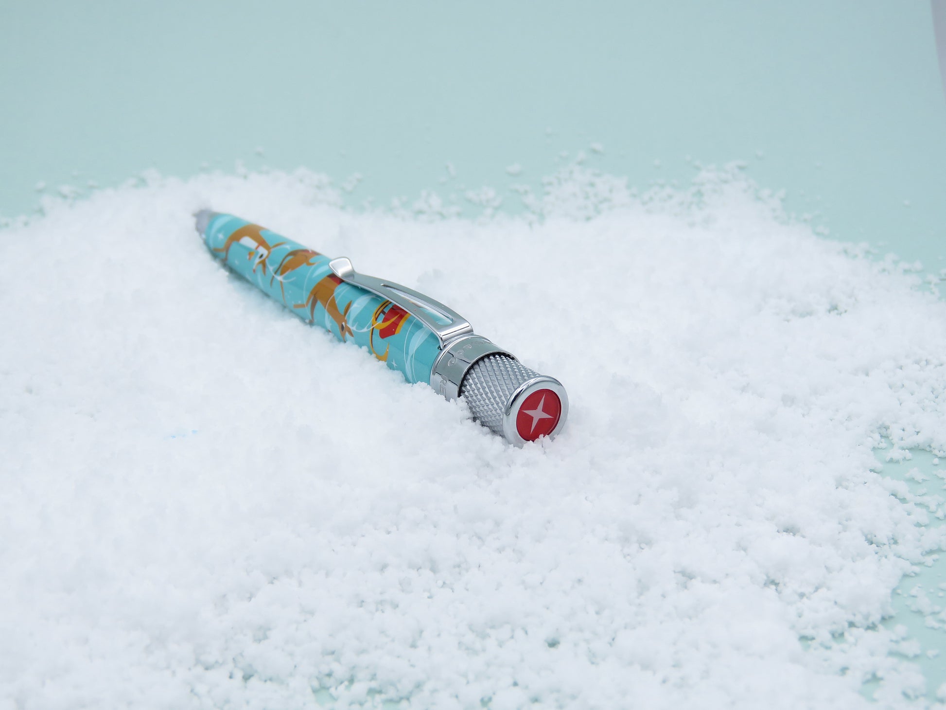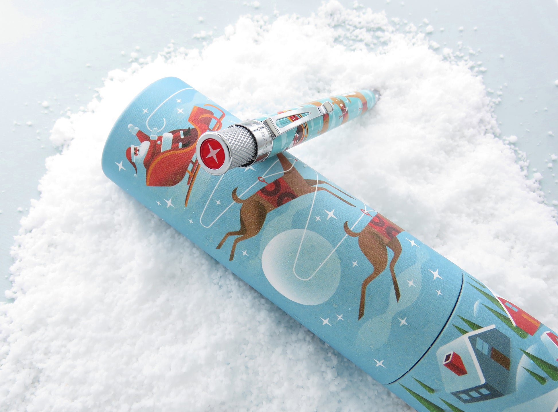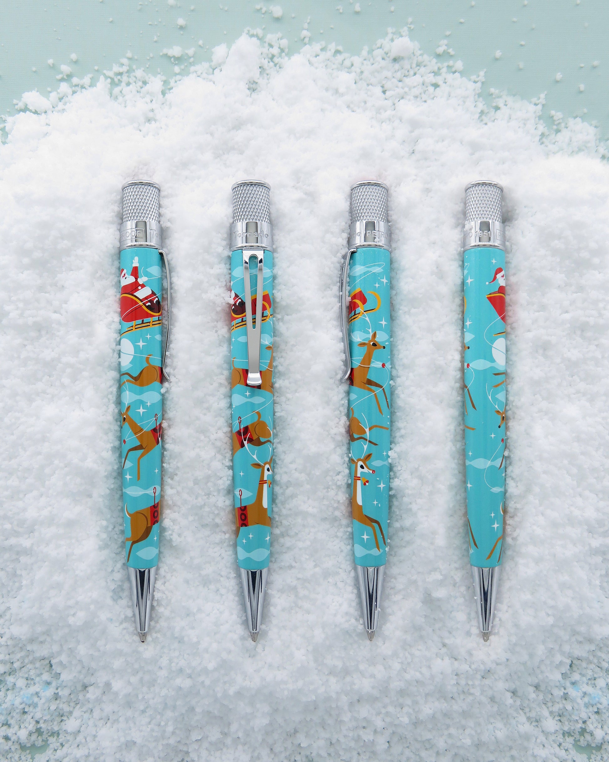 Santa's making a list, he's checking it twice, and he's writing with the new Retro51 to be precise. Just in time for the holidays we're excited to share Merry and Write, the latest design in the Tornado Popper Series. Limited to just 1225 rollerballs, this pen will bring smiles and the holiday spirit. The glittery lacquer barrel is printed with Santa and his reindeers including Rudolph leading the way. Complete with chrome accents this pen brings the bright and now you can write...Santa Claus is coming to town! Treat yourself because you've been good for goodness sake (or get some for gifts because they're great stocking stuffers).