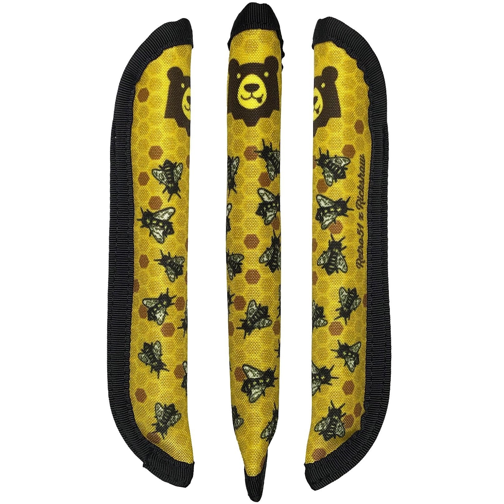 This Rickshaw Bagworks single pen sleeve features a yellow polyester canvas material with a print of bees, with a super-soft yellow plush interior.