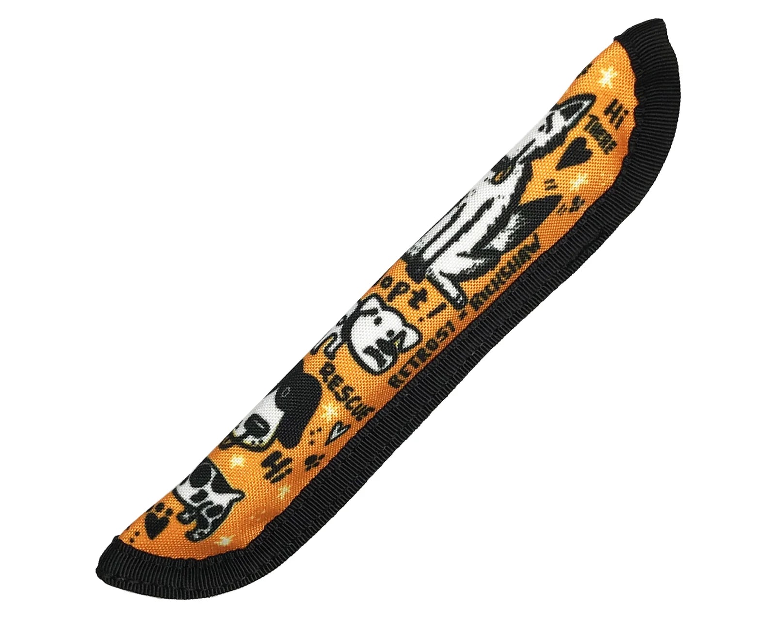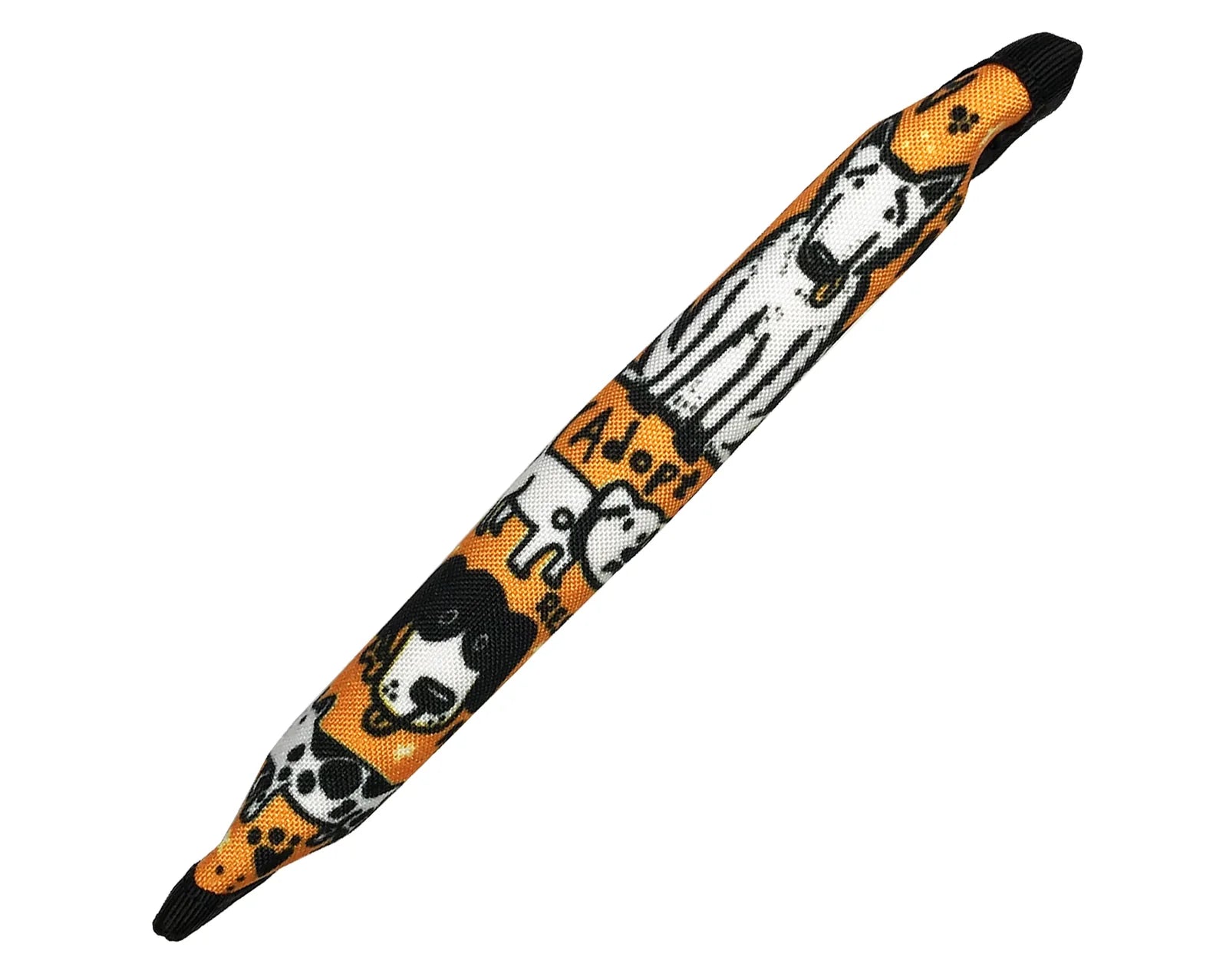 This Rickshaw Bagworks single pen sleeve features a orange polyester canvas material with a print of dogs, with a super-soft orange plush interior.