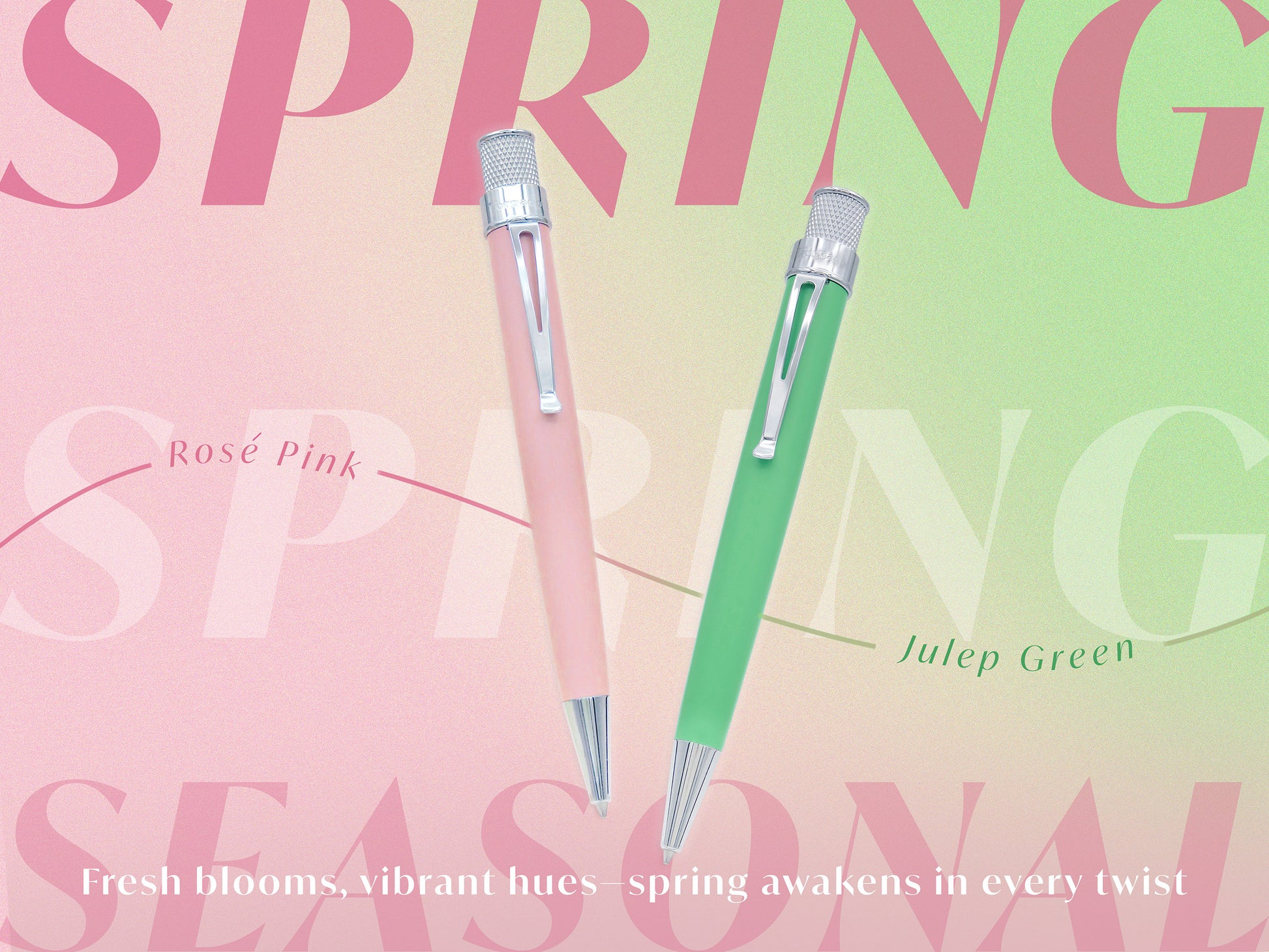 Julep is here to bring spring to your desk, bag, or wherever you need a burst of inspiration. This pastel beauty—crafted with soft satin finishes and timeless chrome accents—is the perfect tool to help your writing to blossom. From the first word to the last, let it flourish with every stroke, adding a touch of elegance and fresh energy to your writing. This spring essential is packaged in our Retro graphic tube and will only be here for the season, a limited time —add Julep to your collection today!
