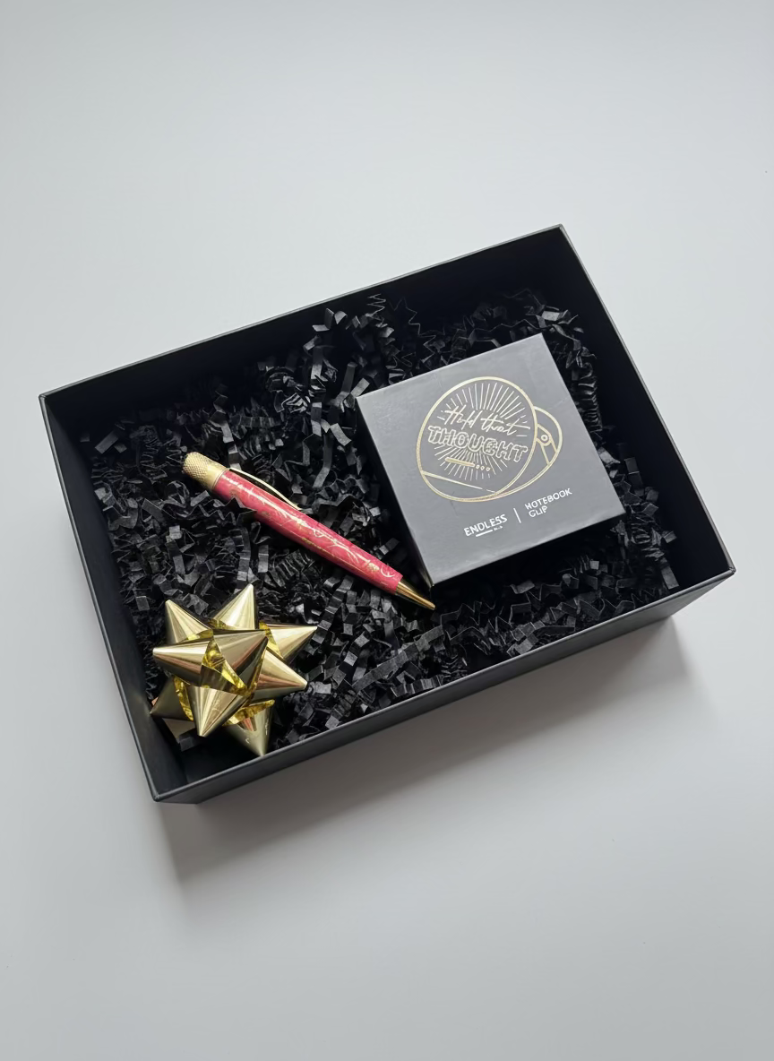 Paired with it is the Endless Hold That Thought Clip—a clever, snappy little accessory designed to keep your papers and notes neatly gathered while you collect your thoughts. Compact at 4 cm and presented in a charming gift box, it’s both functional and delightful.