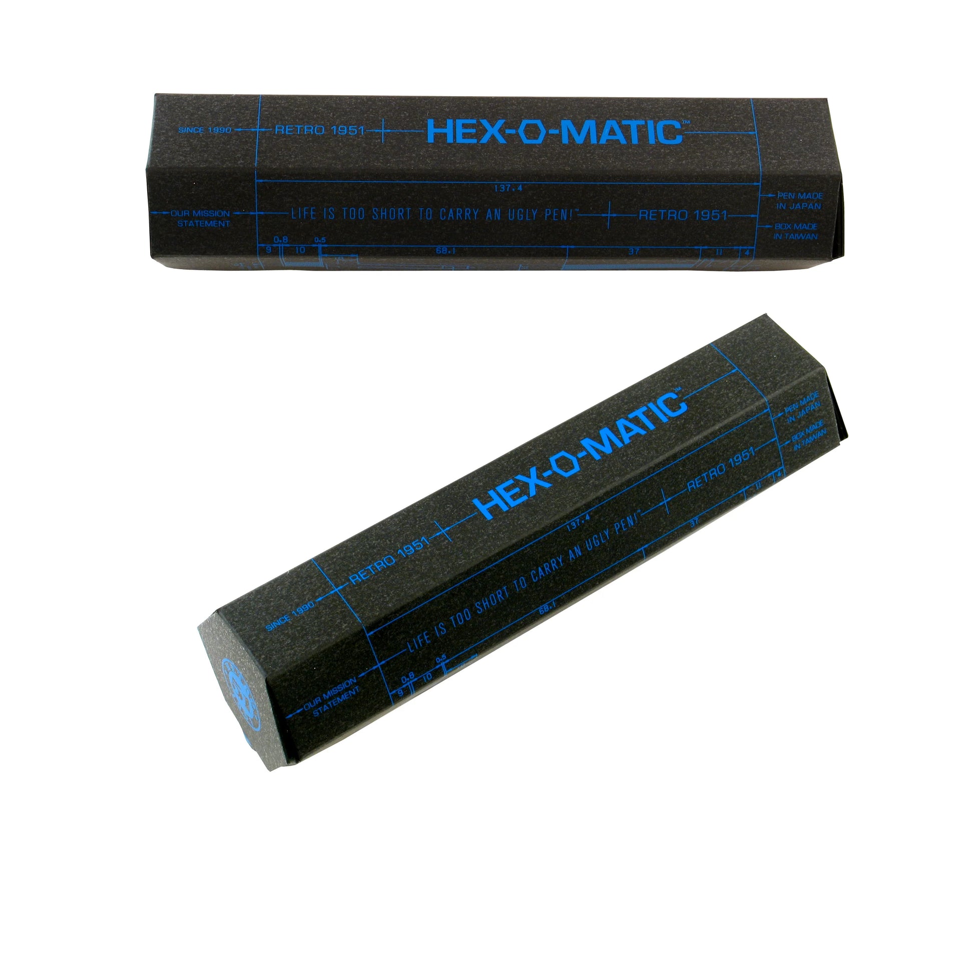 Paired with the precision-built Retro 51 Hex-O-Matic, this set is ideal for technical minds and everyday note-takers alike. The faceted, all-metal barrel and knurled grip offer balance and comfort, while its click-action mechanism advances the refill with ease. It comes pre-loaded with an Easyflow REF71 refill and is also compatible with Schmidt Easyflow 9000, P900, and P900 Eco options. Packaged in a distinctive fold-out hexagonal box, it’s built to impress.