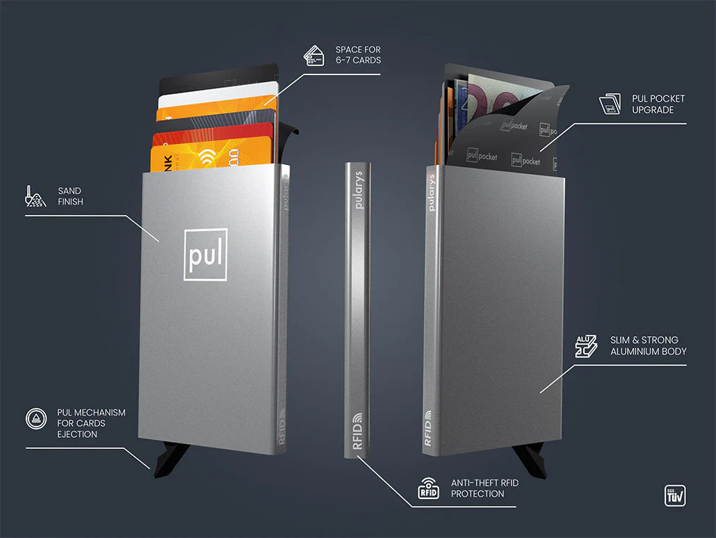 The Pularys Zen is crafted from durable aluminium and available in a range of contemporary colours. Its smooth, gradual card-ejection mechanism gives quick, effortless access to your cards, while RFID protection ensures your personal data stays safe from theft or unauthorised scanning. Slim, compact, and stylish, it fits perfectly in a pocket, small handbag, or everyday wallet—always right where you need it.