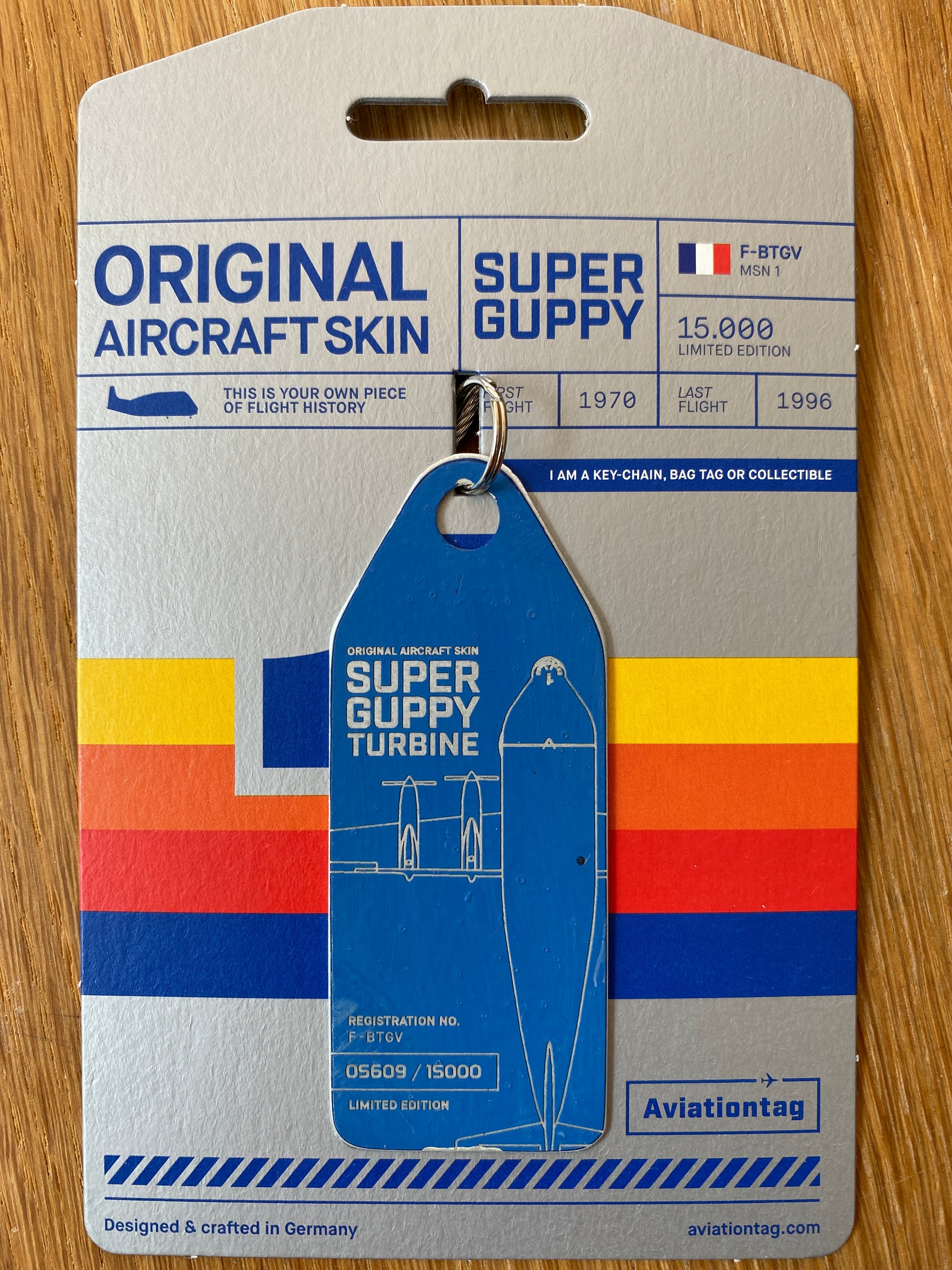 - The paint of the colored Aviationtags is not in ideal condition. Only parts of that are the original paint, some of it has been added by the team of the Super Guppy Restauration Project in Bruntingthorpe and it is not authentic aircraft paint that they used. So it is to be expected that the paint is flaky and can come off at the edges. We suggest to use the protective Aviationtag case as well.