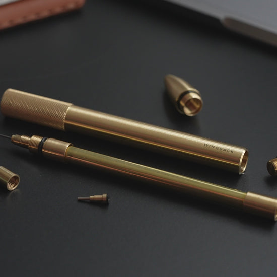 Experience writing excellence with the 2023 Red Dot award-winning Wingback Mechanical Pencil. Crafted from aerospace-grade brass, this pencil boasts a stylish knurled grip and exquisite finish that elevates your sketching and writing experience. -- The pencil's wide diameter and ergonomic design help alleviate hand fatigue during extended use, while its reassuring weight provides a satisfying balance. With a simple click on the crown, you're ready to sketch your next masterpiece or jot down brilliant ideas. -- Each pencil comes equipped with a pack of high-polymer, break-resistant lead, ensuring smooth and consistent lines every time. The precision-engineered mechanism guarantees reliable performance, making this pencil a dependable companion for all your creative needs. -- Embrace the art of writing and sketching with the Mechanical Pencil - Steel—a beautifully crafted tool that combines elegance and functionality to inspire your creative pursuits.