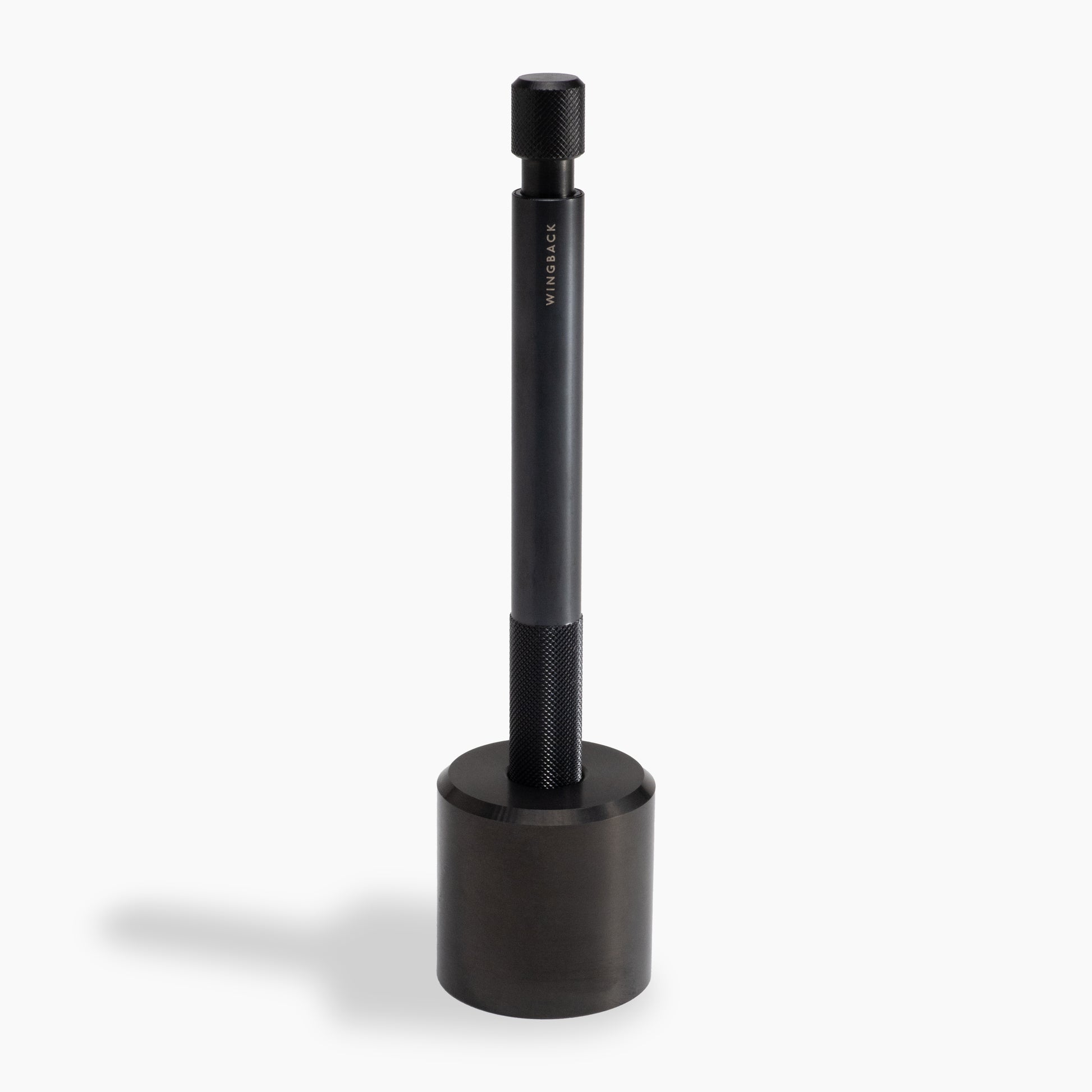 A masterpiece of precision engineering, this pen holder is a stunning addition to any desk. Machined from solid aerospace-grade metal in England, it showcases exceptional craftsmanship and attention to detail. -- Designed to perfectly accommodate Wingback's mechanical pen, pencil, or fountain pen, this holder provides a secure and elegant home for your writing instruments. Its substantial weight also allows it to double as a stylish paperweight, adding both functionality and sophistication to your workspace. -- The Pen/Pencil Holder - Black Steel's machine-turned finish creates a sleek, modern aesthetic that complements its robust construction. Built to last, it embodies Wingback's commitment to quality and durability. -- This pen holder isn't just a practical item – it's a statement piece that reflects your appreciation for fine craftsmanship and timeless design.