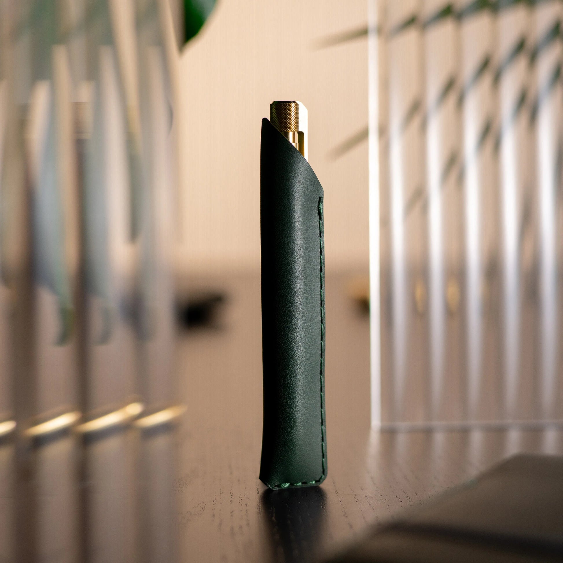 Discover a modern twist on the classic pencil case. This sleek, minimalist accessory is designed to keep your writing and drawing tools organised, accommodating up to five pens while offering a clean, stylish finish with its front closure. -- The Pen Slip is tailored specifically for the Wingback Pen and Pencil lines, each one is meticulously hand-stitched in our London workshop using premium full-grain Tuscan leather. Selected for its durability and rugged quality, this leather will develop a unique patina over time, showcasing the marks of your shared adventures as a testament to its journey. -- Elevate your everyday carry with this beautifully crafted Pen Slip, where functionality meets elegance.